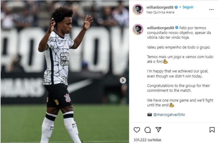 Willian voltou ao Corinthians em setembro deste ano e disputou nove jogos, nenhum gol e deu duas assistências nos 452 minutos em que esteve em campo, segundo o site “Transfermarkt”. Após a volta da lesão, o atacante tem em 2022 a temporada decisiva para disputar a Copa do Mundo de 2022 no Catar.