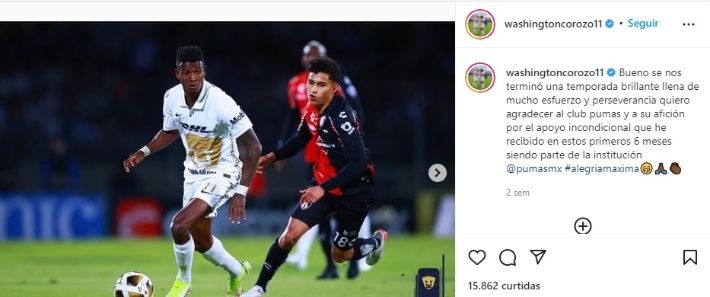 Washington Corozo defendeu Sporting Cristal, do Peru, e Pumas, do México, em 2021 e atingiu pelo clube peruano 14 jogos, um gol e duas assistências, enquanto no México foram 19 partidas disputadas e cinco gols marcados, segundo o site “oGol”. Pela seleção do Equador também fez sua estreia com uma partida pelas Eliminatórias para a Copa do Mundo de 2022 no Catar.