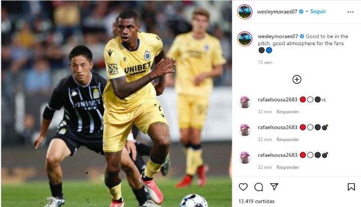 Wesley Moraes está no Club Brugge, da Bélgica, emprestado pelo Aston Villa, e não marca um gol desde o dia 1º de janeiro de 2020. Nesse período foram dez jogos disputados, seis pelo Brugge, com nenhum gol e nenhuma assistência, números que alertam os torcedores do Palmeiras principalmente por suas lesões.