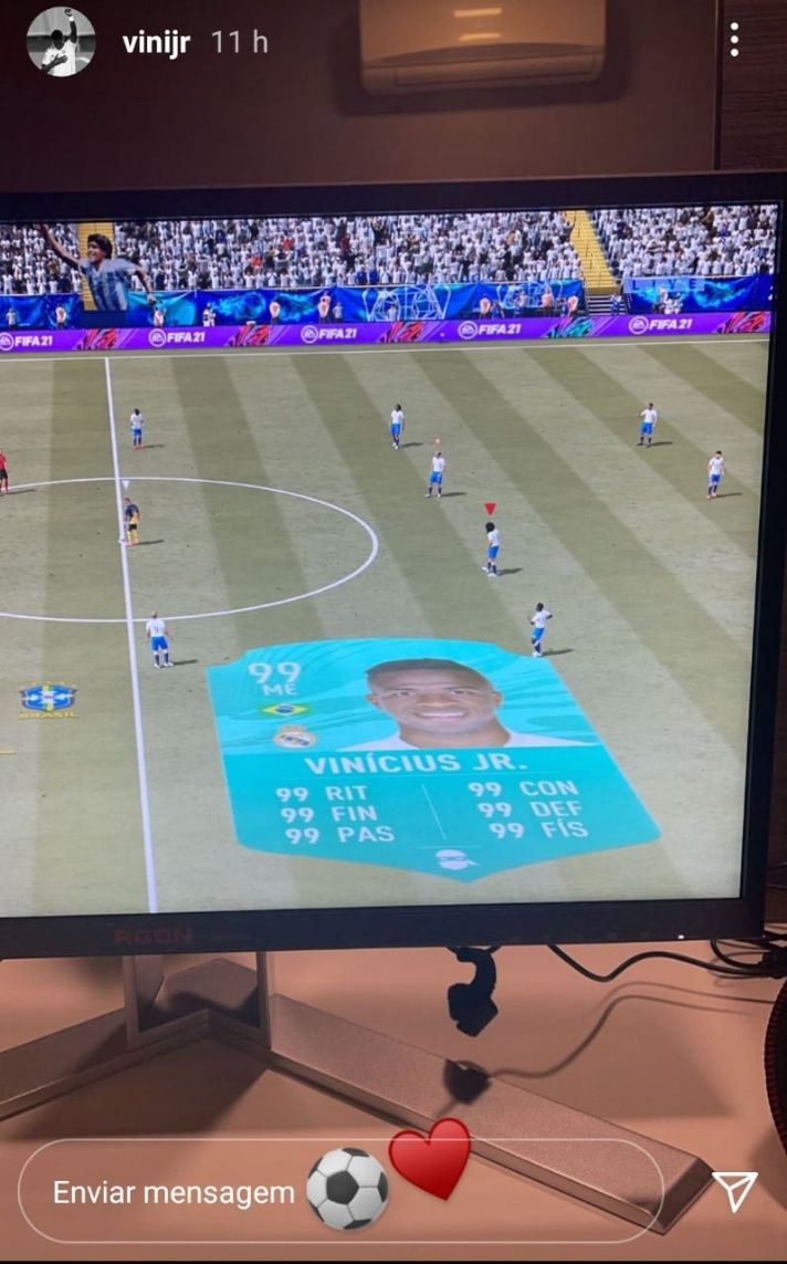 Vinícius Júnior é a última opção do ataque de sete jogadores de Tite e foi o atleta que menos entrou em campo a frente apenas de Douglas Luiz e Felipe, mas enquanto não consegue a chance desejada, sonha com ela no videogame ao se escalar para jogar na Seleção Brasileira.