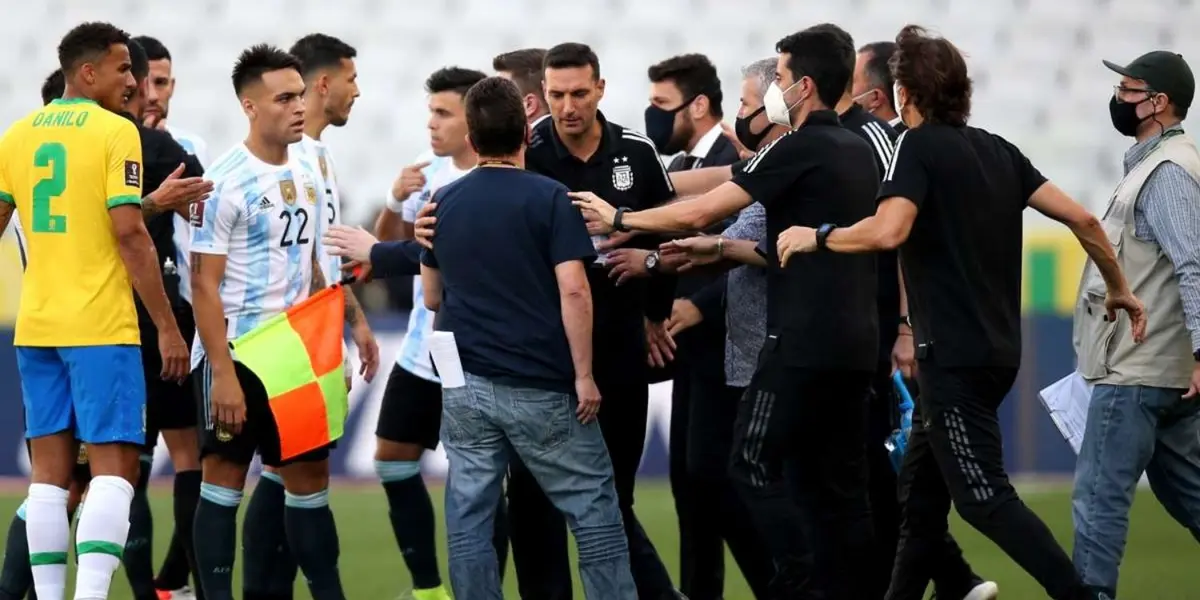 Agentes da Anvisa – Agência Nacional de Vigilância Sanitária – e a Polícia Federal interromperam o duelo pelo fato de que os jogadores argentinos que jogam na Inglaterra, casos do goleiro Emiliano Martínez (Aston Villa), o zagueiro Cristian Romero (Tottenham), o meia Lo Celso (Tottenham) e o atacante Emiliano Buendía (Aston Villa), não terem cumprido a quarentena obrigatória de 14 dias, medida do governo brasileiro.