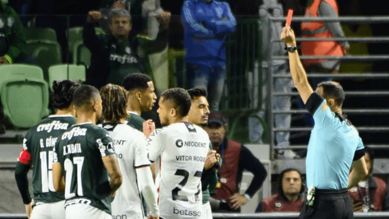 O Verdazzo teve o zagueiro Murilo expulso no final do primeiro tempo, depois que o árbitro reviu o lance na cabine do VAR. Assim, o Verdão precisou jogar toda a segunda etapa em desvantagem numérica. Antes disso, porém, Alex Santana acertou uma cotovelada em Rony em disputa dentro da área palmeirense, e levou apenas o cartão amarelo. Foi essa a principal reclamação pelo lado alviverde após a partida.
