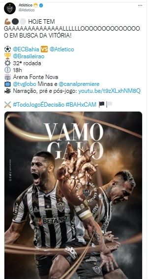 O Atlético-MG e seus torcedores fazem contagem regressiva no que pode ser o jogo do título do Campeonato Brasileiro 2021. O Galo enfrenta o Bahia nesta quinta-feira (2), às 18h, na Arena Fonte Nova, em Salvador, pela 32ª rodada do Brasileirão e, em caso de vitória, comemora o bicampeonato brasileiro em sua história 50 anos depois, mas qualquer outro placar deixa a disputa com o Flamengo em aberto.