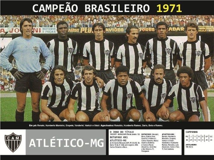 Apesar de apenas 2 títulos, o Atlético Mineiro conquistou a primeira edição da história do Campeonato Brasileiro, em 1971. Após vários torneios nacionais, tais como a Taça Brasil, a Taça de Prata e o Torneio Roberto Gomes Pedrosa, foi nesse ano criada a primeira edição do Campeonato Brasileiro como o conhecemos nos dias de hoje. Com uma ótima campanha, o Galo superou o Cruzeiro e levantou o troféu, com Telê Santana como o grande técnico na altura.