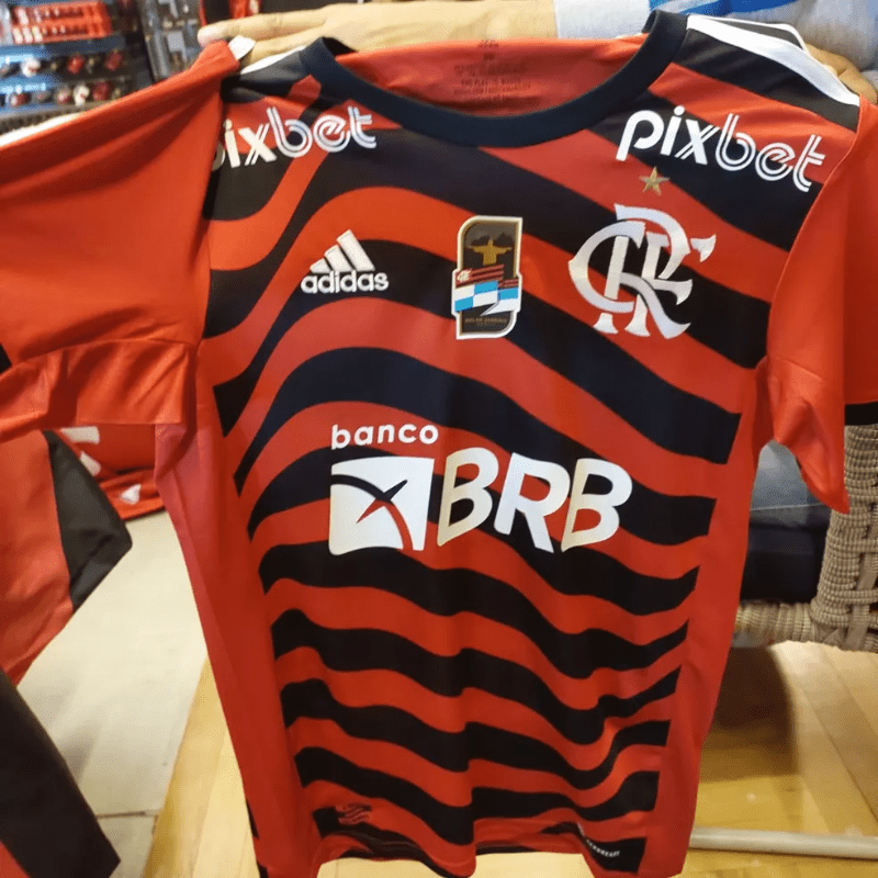 A título de comparação, no ano passado, um dia depois do lançamento do terceiro Manto Sagrado, 10.100 peças foram comercializadas. Se em 2021 a camisa era toda preta, em 2022 a vestimenta é rubro-negra, com listras onduladas, simulando a bandeira, em homenagem aos torcedores. Outra novidade são as três linhas tradicionais da Adidas com a cor branca, nos ombros.