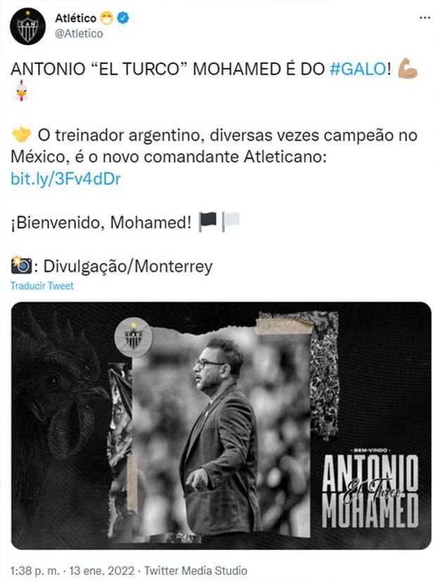 O Atlético Mineiro pretende conquistar o bicampeonato da Série A brasileira e conquistar a Copa Libertadores pela segunda vez em sua história após a conquista em 2013. Por isso, o "Gallo" anunciou que Antonio Mohamed é seu novo treinador até final de 2022.