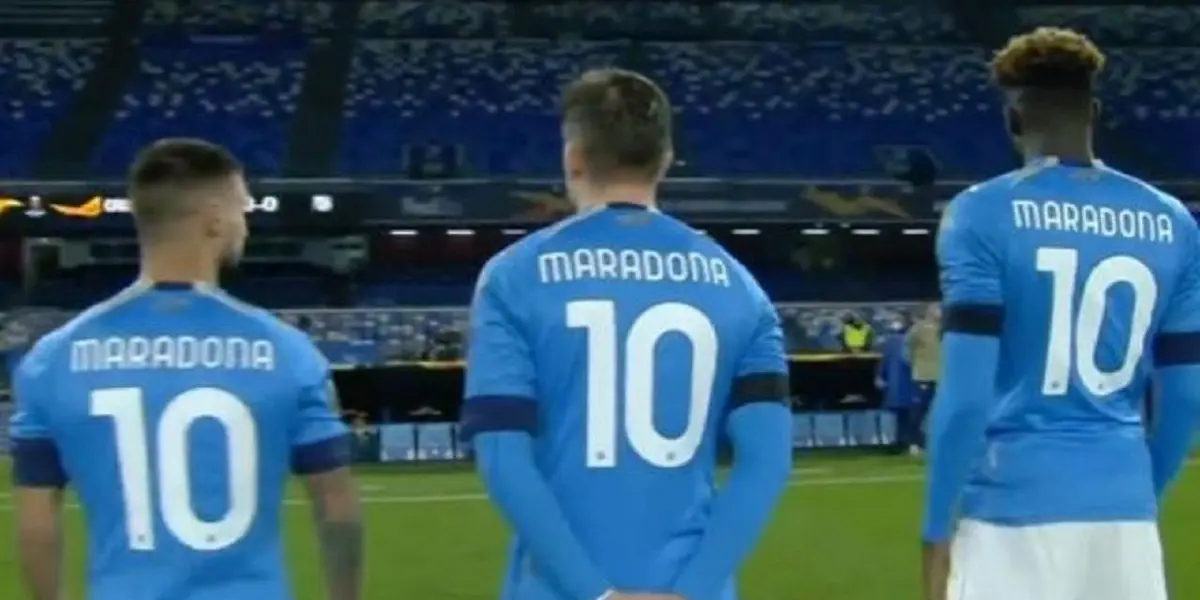 Conforme apurou a EFE, o Napoli concordou com a UEFA a possibilidade de sair com elásticos com o número histórico de Diego e manter uma imagem fixa do Pibe de Oro nas telas de San Paolo.