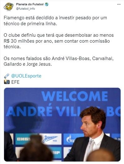 André Villas-Boas está sem clube desde fevereiro quando comandou o Olympique de Marselha, da França. Desempregado, a negociação com o treinador português de 44 anos seria mais fácil e o salário de R$ 3,5 milhões por mês que pediria, segundo o site “Sportekz”, seria obrigado a ter redução pela impossibilidade de trabalhar no Brasil com esse salário.