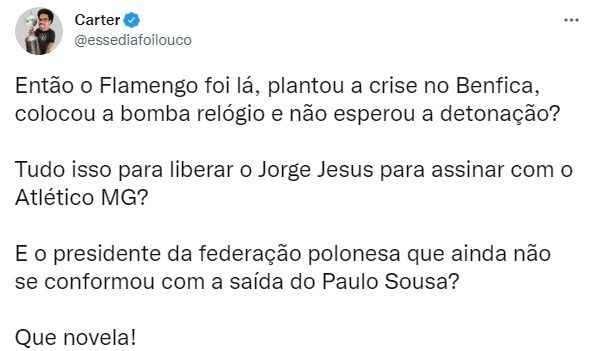 A terça-feira começou agitada para as torcidas de Flamengo e Atlético-MG. A notícia de que Jorge Jesus vai entregar o cargo no Benfica e o anúncio da decisão de Cuca de não permanecer no Galo em 2022 mexeram com o humor dos torcedores.